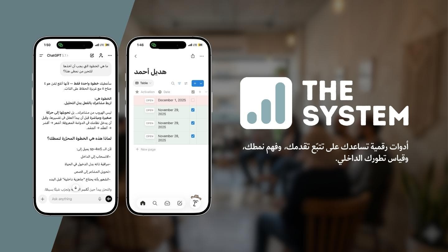 الدرس الذي كلفني سنوات لأتعلمه هو: التغيير العميق لا تصنعه قوة الإرادة وحدها، لأنها ستذبل، بل يصنعه تجسيد هوية جديدة. أنت تحتاج لنظام يحاسبك ولمرافق في رحلتك.